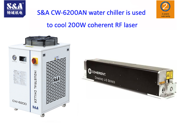 A laser company in Beijing mainly engaged in the development, production  and sales of laser processing equipment has established a branch office  in Xiamen. Now the branch office needs to purchase a water chiller to  cool their 200W coherent RF laser. As this laser company in Beijing had  used S&A water chiller before, the order was placed directly by the  headquarters, who purchased S&A CW-6200AN water chiller for the  Xiamen Branch Office to cool the 200W coherent RF laser.