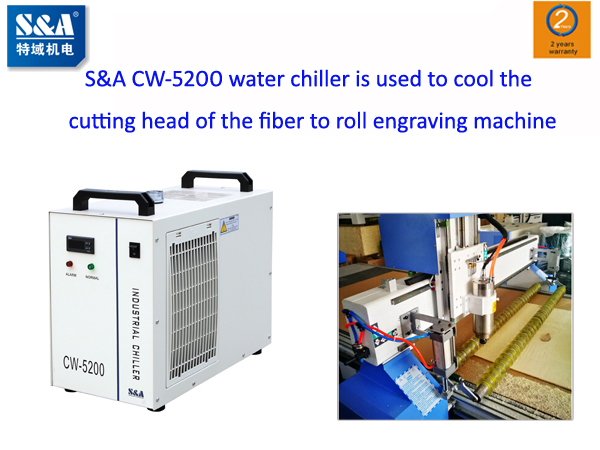 Mr. Kang from Shanghai consulted us about which water chiller could  be used to cool the cutting head of the fiber to roll engraving machine.  based on the parameters of the fiber to roll engraving machine provided  by Mr. Kang, S&A recommended CW-5200 water chiller to cool their  device. With up to 1400W cooling capacity and ±0.3℃ precisely  temperature control, S&A CW-5200 water chiller is small in size and  easy to operate with a long service life. Also it has multiple  temperature control modes: the constant temperature control mode and the  intelligent temperature control mode. In the intelligent temperature  control mode, the water temperature will be regulated accordingly with  the change of the temperature. One-key operation can relieve you from  many troubles and you won’t have to worry about the regulation of water  temperature with the change of seasons.