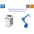 chiller CW-6000 to cool the robot plasma welding machine of 500A. The cooling capacity of S&A chiller CW-6000 is up to 3000W, which can meet the requirements of the robot plasma welding machine.