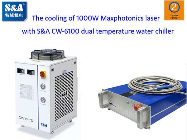 Cutting machine is greatly demanded on the market and this can be  reflected through the shipments made to our customer, Mr. Shan, who is  mainly engaged in the production of CNC cutting machine and CNC flame  cutting machine. There are many shipments made to him every month. Mr.  Shan has begun to produce fiber laser cutting machine with the usage of  Maxphotonics laser. Several days ago, he wanted to purchase a water  chiller to cool the Maxphotonics laser. After Mr. Shan has made a  comparison between the various water chillers from different  manufacturers in terms of the appearance, the quality, the performance  and the after-sales service, he came to S&A in the end. Finally  S&A recommended CW-6100 dual temperature water chiller to him for  the cooling of 1000W Maxphotonics fiber laser. With 4200W cooling  capacity and ±0.5℃ precisely temperature control, S&A CW-6100 water  chiller can fully satisfy the cooling requirement of the 1000W  Maxphotonics laser.