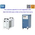 Mr. Shi is from Shanghai mainly dealing with magnetizer and magnetizing  apparatus. He purchases S&A CW-5200 water chiller because their  technician has appointed to order this S&A water chiller model. With  ±0.3℃ precisely temperature control and 1400W cooling capacity, S&A  CW-5200 water chiller has two temperature control modes: the constant  temperature control mode and the intelligent temperature control mode.  In the constant temperature control mode, generally the water  temperature of S&A water chiller is set to be 25℃, which can also be  adjusted manually by the users according to their requirements. In the  intelligent temperature control mode, there is no need to adjust the  control parameters, as the water chiller can automatically regulate the  water temperature with the change of the room temperature to meet the  cooling requirement of the device.